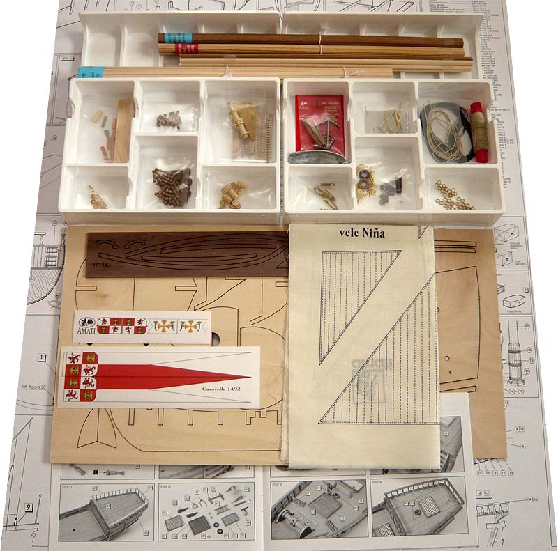 Stavebnica obsahuje všetok materiál a doplnky potrebné k stavbe modelu. Diely z preglejky sú precízne vyrezané laserom. Trup sa stavia plaňkovaním (olištovaním) na rebra, plaňkovanie je dvojité.