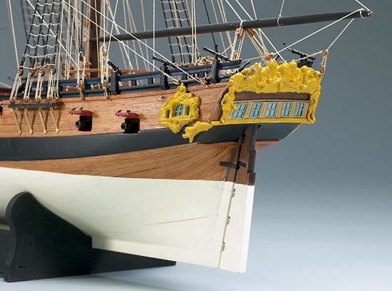 Krivky trupu nezaprú, že loď bola pôvodne navrhnutá ako šalupa. S príchodom tzv. sedemročnej vojny však bola prestavaná na bombovú loď. Granado zaujme tak tiež neobvykle bohatou rezbárskou výzdobou.