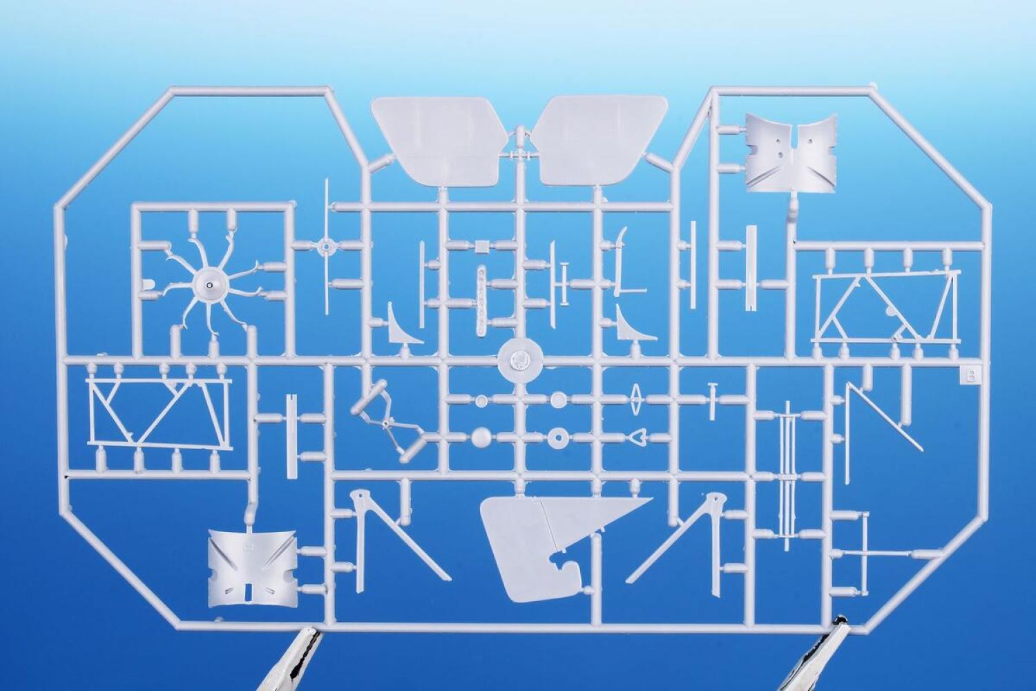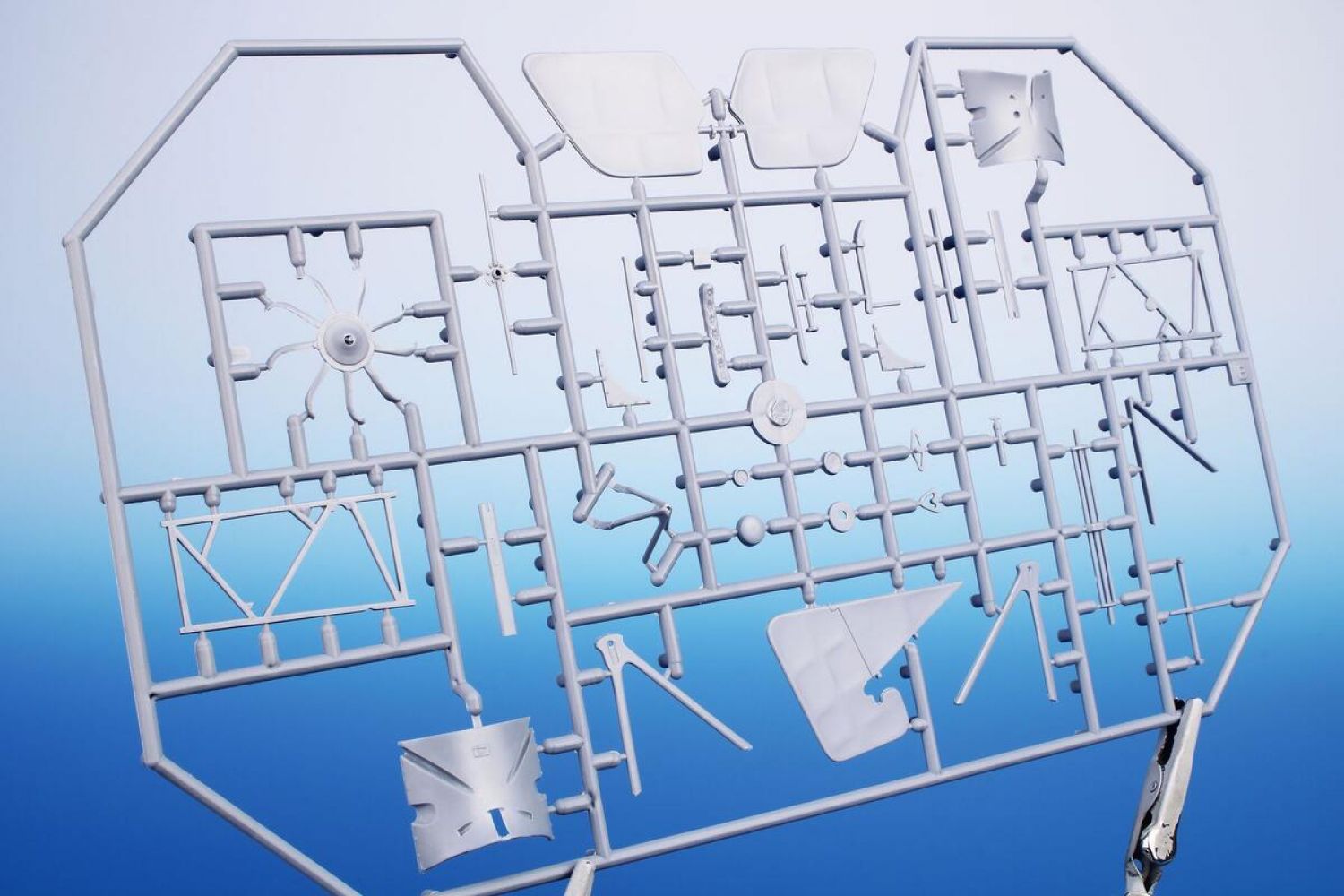 Model sa skladá z troch rámčekov plastových dielov, jedného priehľadného dielu, detailnej vrtule a motora. Dopĺňajú ich planžeta leptov, veterný štítok z čírej fólie a dekály.