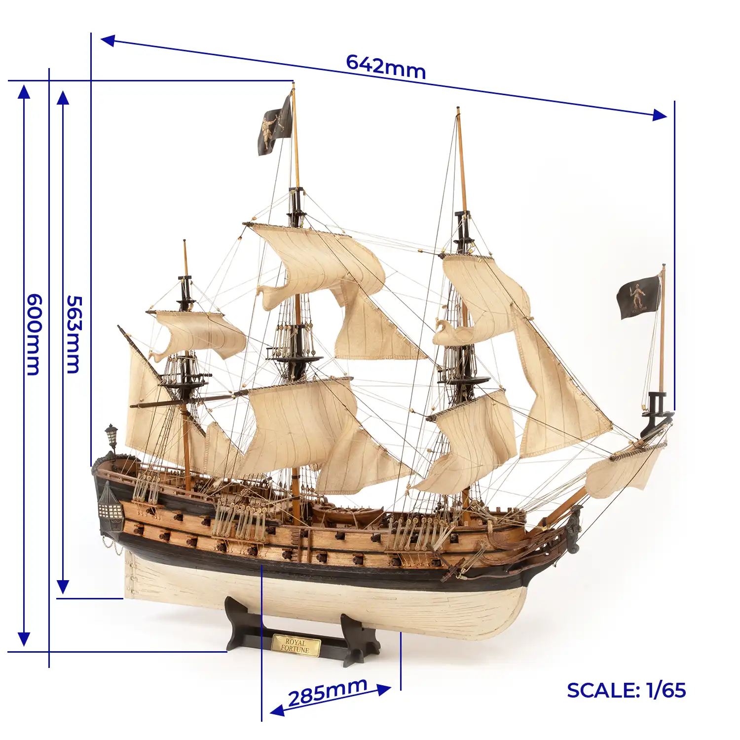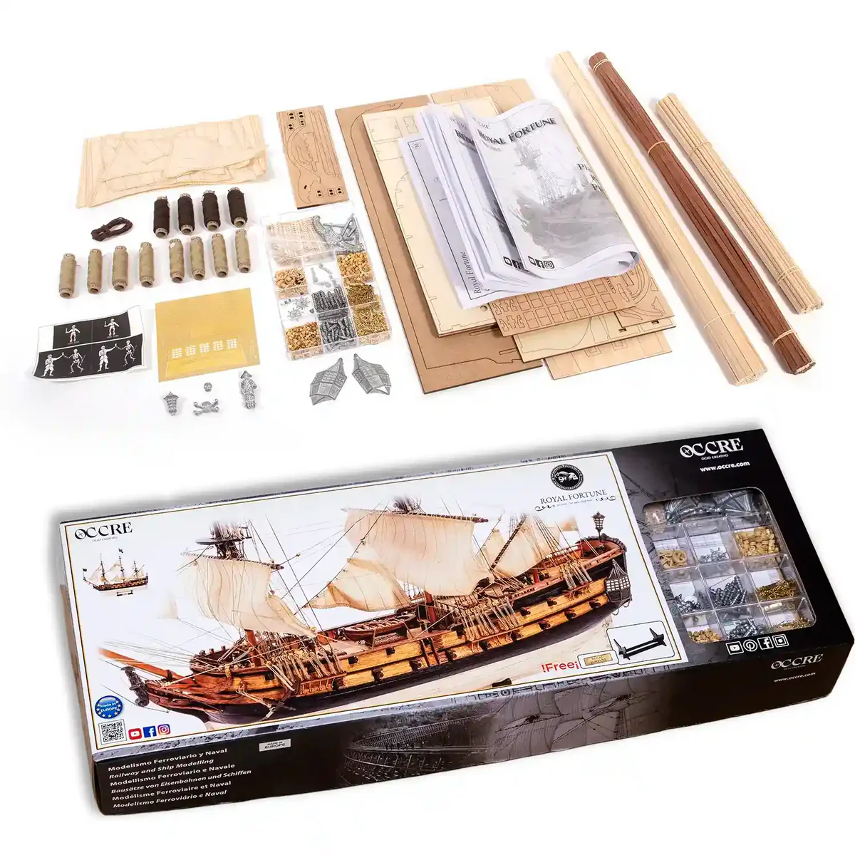 Drevená stavebnica OcCre 12015 – Royal Fortune predstavuje detailný model jednej z najznámejších pirátskych lodí, ktorú podľa historických záznamov používal obávaný pirát Bartholomew Roberts. OcCre spracovalo túto loď s dôrazom na realistické detaily, kvalitné materiály a historickú atmosféru, vďaka čomu je výsledný model mimoriadne pôsobivý a dekoratívny.