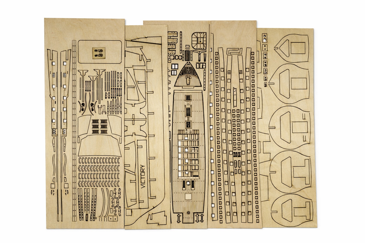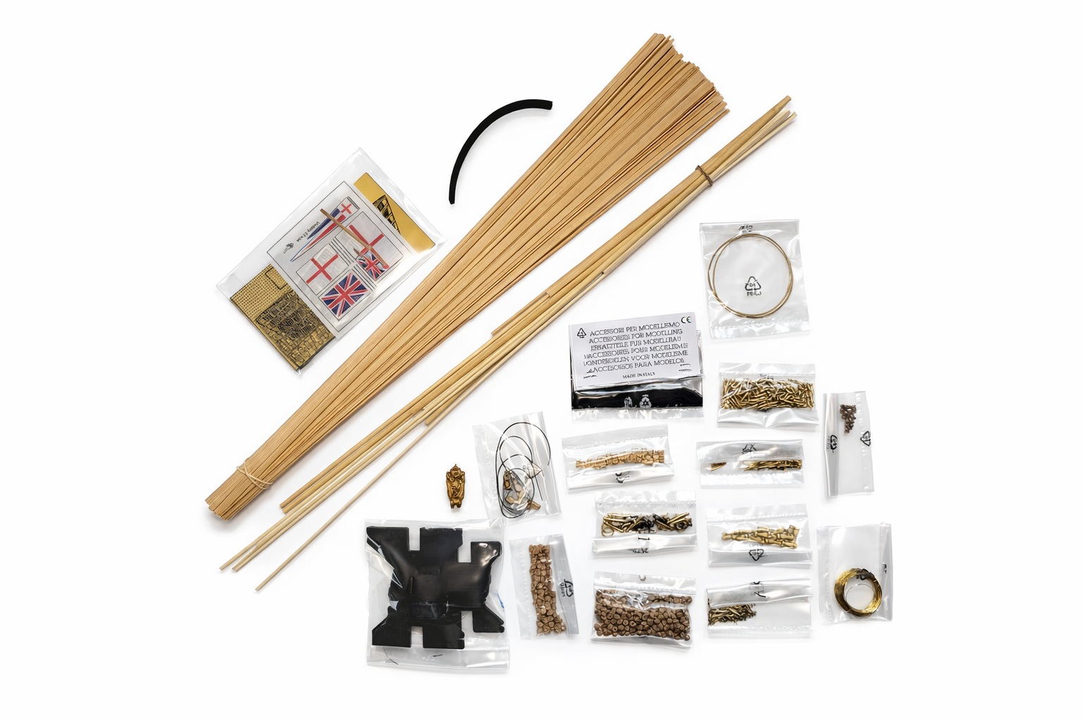 Stavebnica obsahuje všetok materiál potrebný k stavbe modelu okrem lepidiel, farieb a bezfarebného laku. Trup sa zhotovuje klasickou technológiou plaňkovaním na rebrá. V stavebnici nájdete diely z preglejky, plaňky a lišty, guľatinu na sťažeň a rahná, hotové kladky, očka, klinčeky, nite na imitáciu lán, kotvy, zástavy a iné diely. Diely z preglejky sú precízne vyrezané laserom a k oddeleniu stačí ostrý nôž. Na lepenie drevených dielov je možné použiť disperzné lepidlo a na lepenie kovových dielov sekundové.