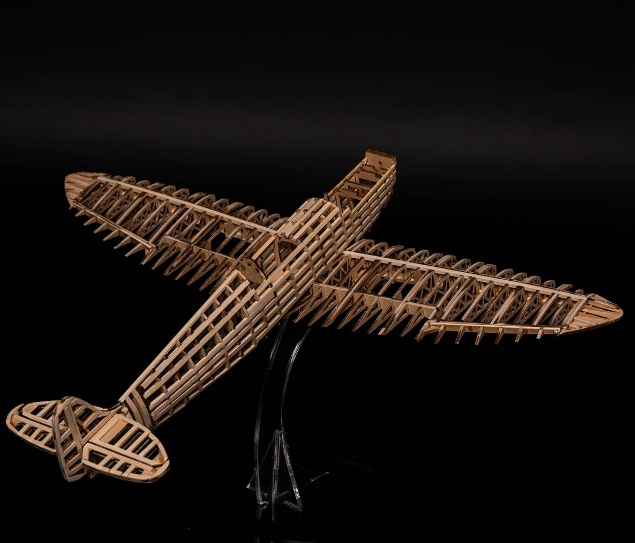 Drevená konštrukcia trupu a krídel zabezpečuje pevnosť a stabilnú montáž.