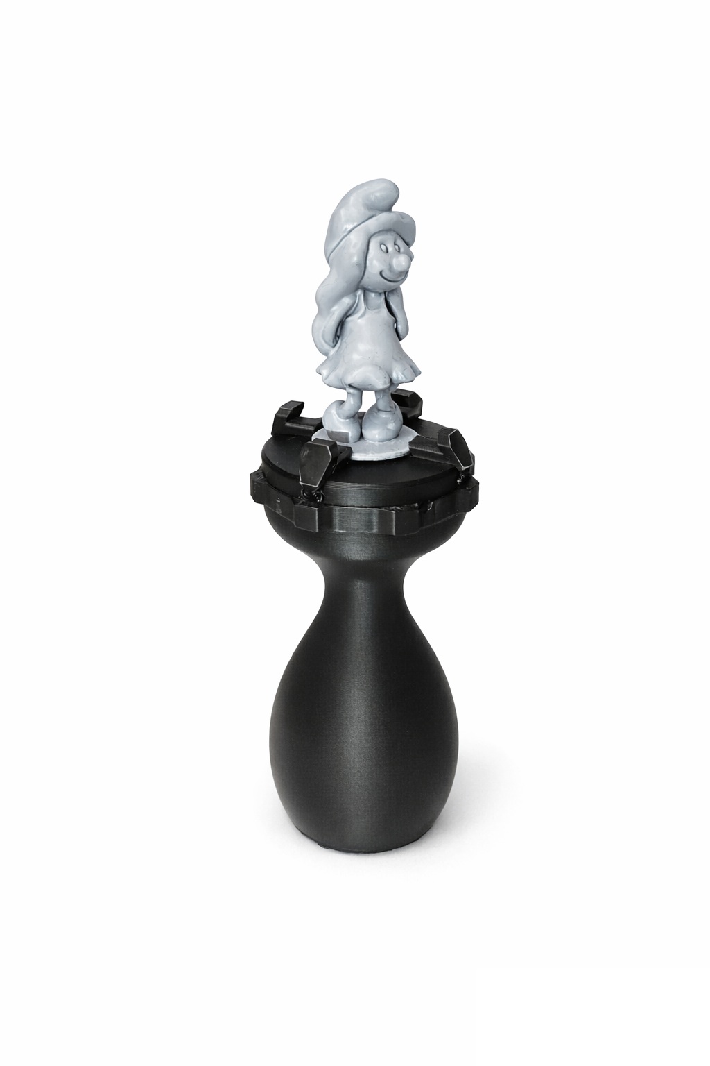 Držiak je vybavený posuvnými klieštinami, ktoré sa nastavujú otáčaním prstenca. Vďaka tomuto mechanizmu je možné upevniť figúrku s veľkosťou podstavca od 1,6 cm do 4,8 cm. Produkt je dutý, čo umožňuje vloženie záťaže pre lepšiu stabilitu pri položení na stôl – ideálne riešenie pre dlhé maľovacie procesy.