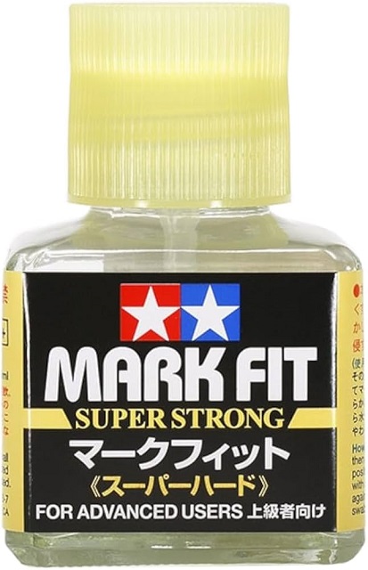 Tamiya Mark Fit Super Strong Tekutý prípravok na dekály super silný. Prípravok, ktorý zvyšuje priľnavosť a uľahčuje prispôsobenie dekálov nerovným, zakriveným a matným plastovým povrchom.